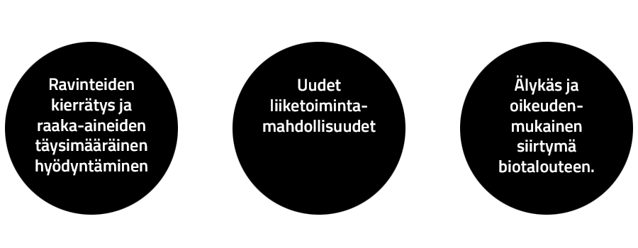 Biopohjaisilla vaihtoehdoilla korvataan fossiilisia raaka-aineita materiaalien, kemikaalien, lannoitevalmisteiden ja polttoaineiden valmistuksessa. Uusissa arvoketjuissa syntyy myös uudenlaisia käyttömuotoja, ja jonkun turhaksi jäävä tähde on toisen kallisarvoinen raaka-aine.